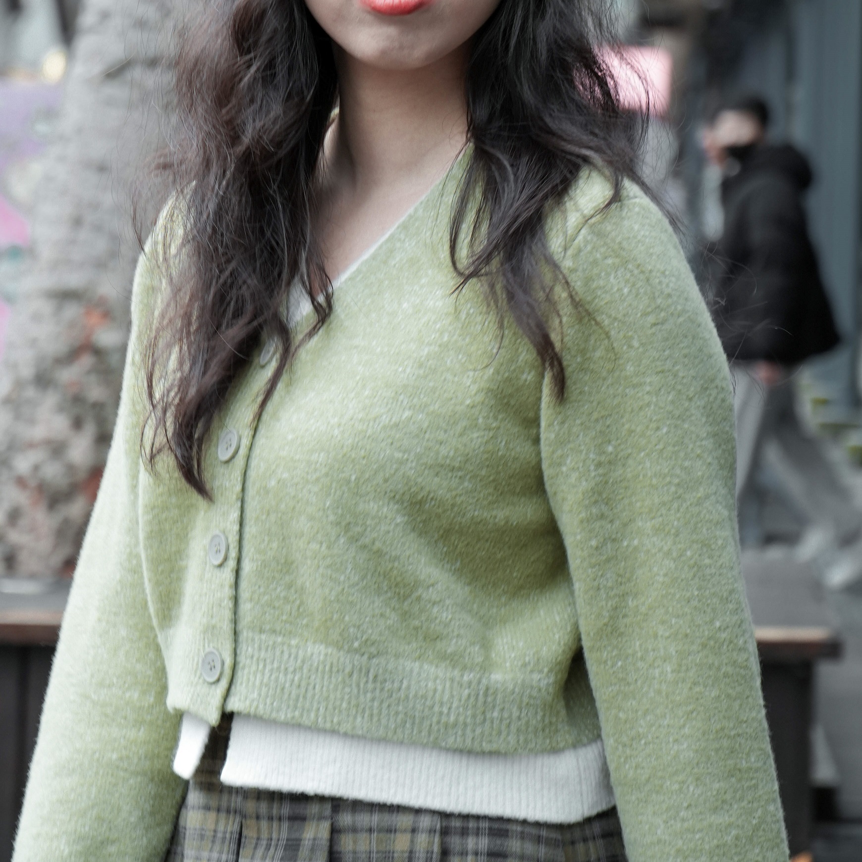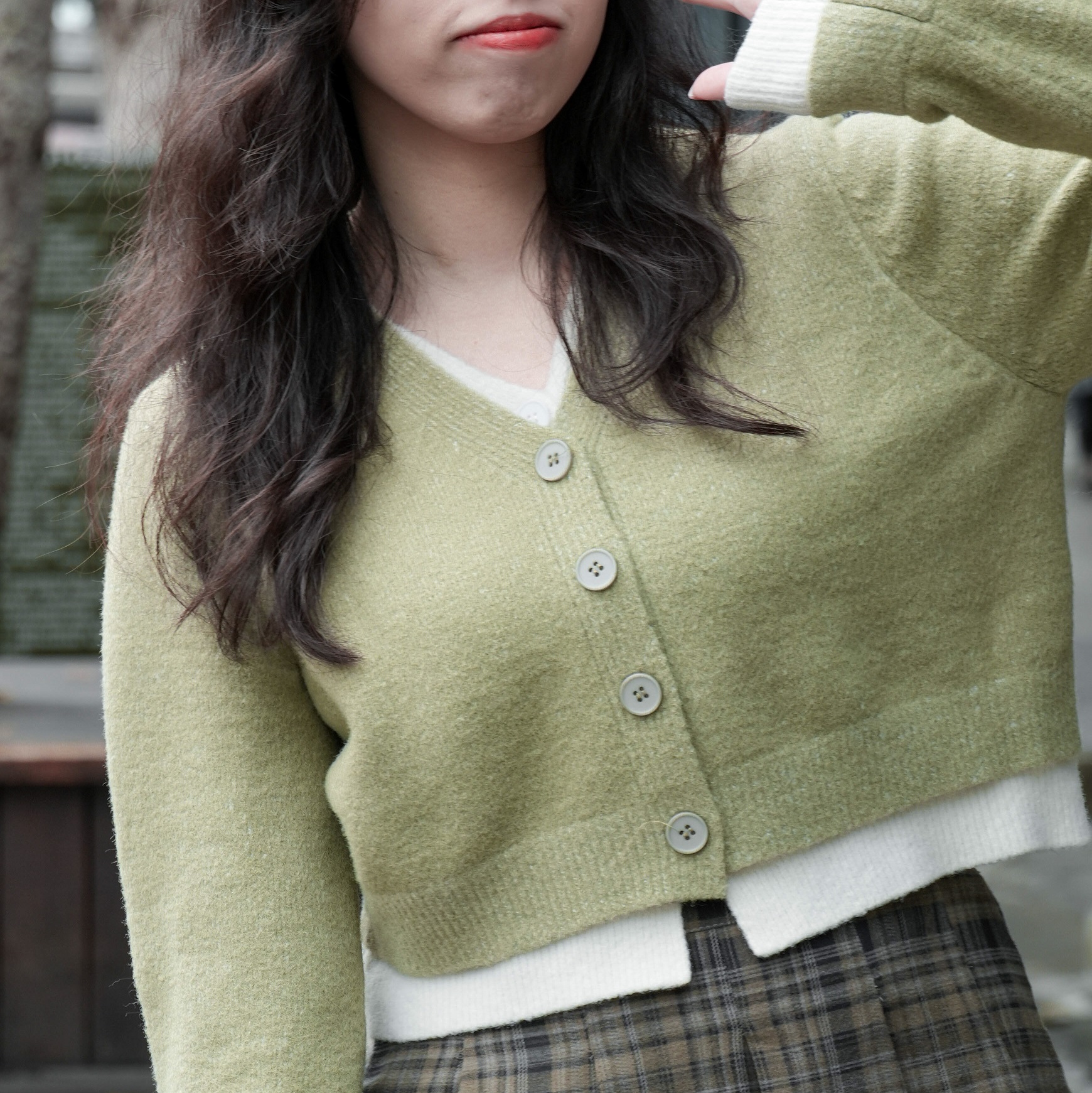 兩層釦子都可以打開,但其實是假兩件的薄針織衫
