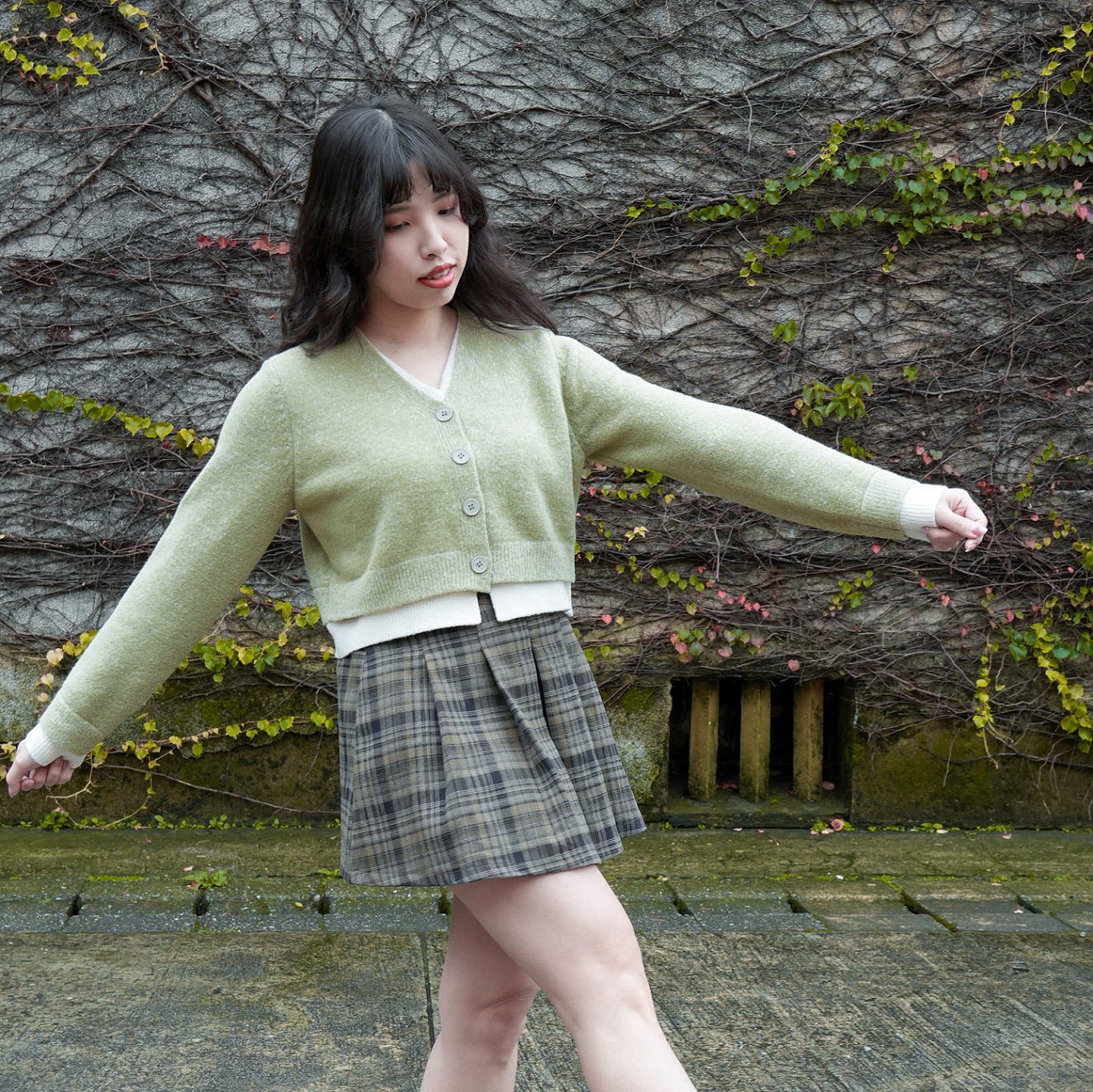 格紋百褶裙(2色)