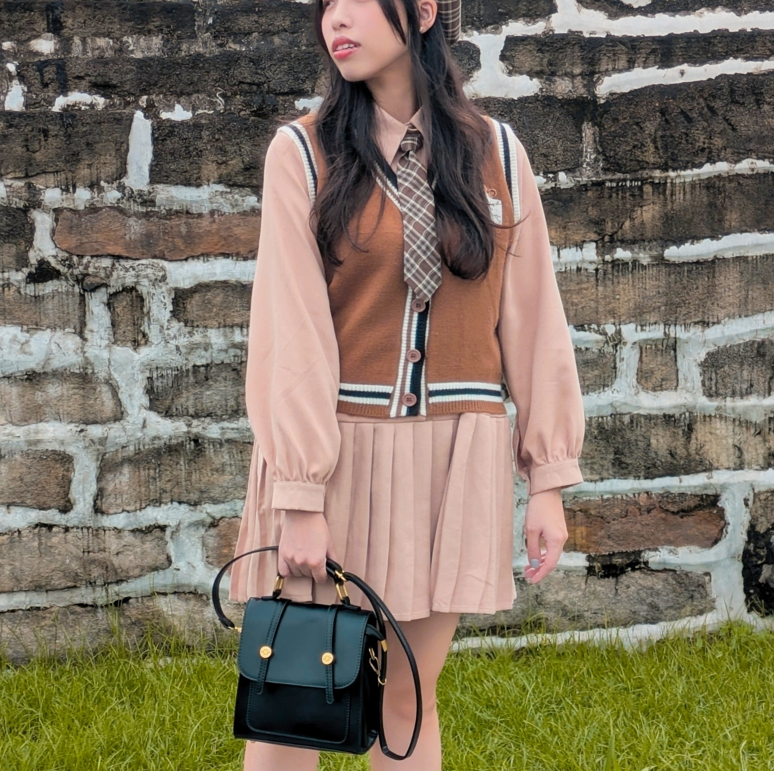 書卷少女—三件套(洋裝、背心、領結)(4色)