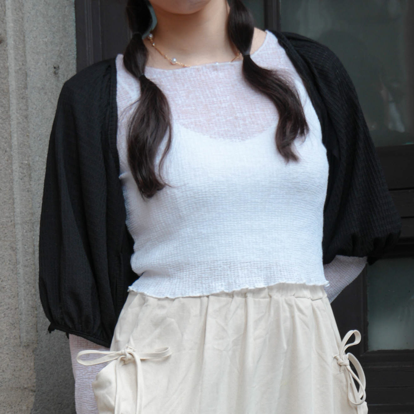 泡泡短袖綁帶罩衫 (3色)