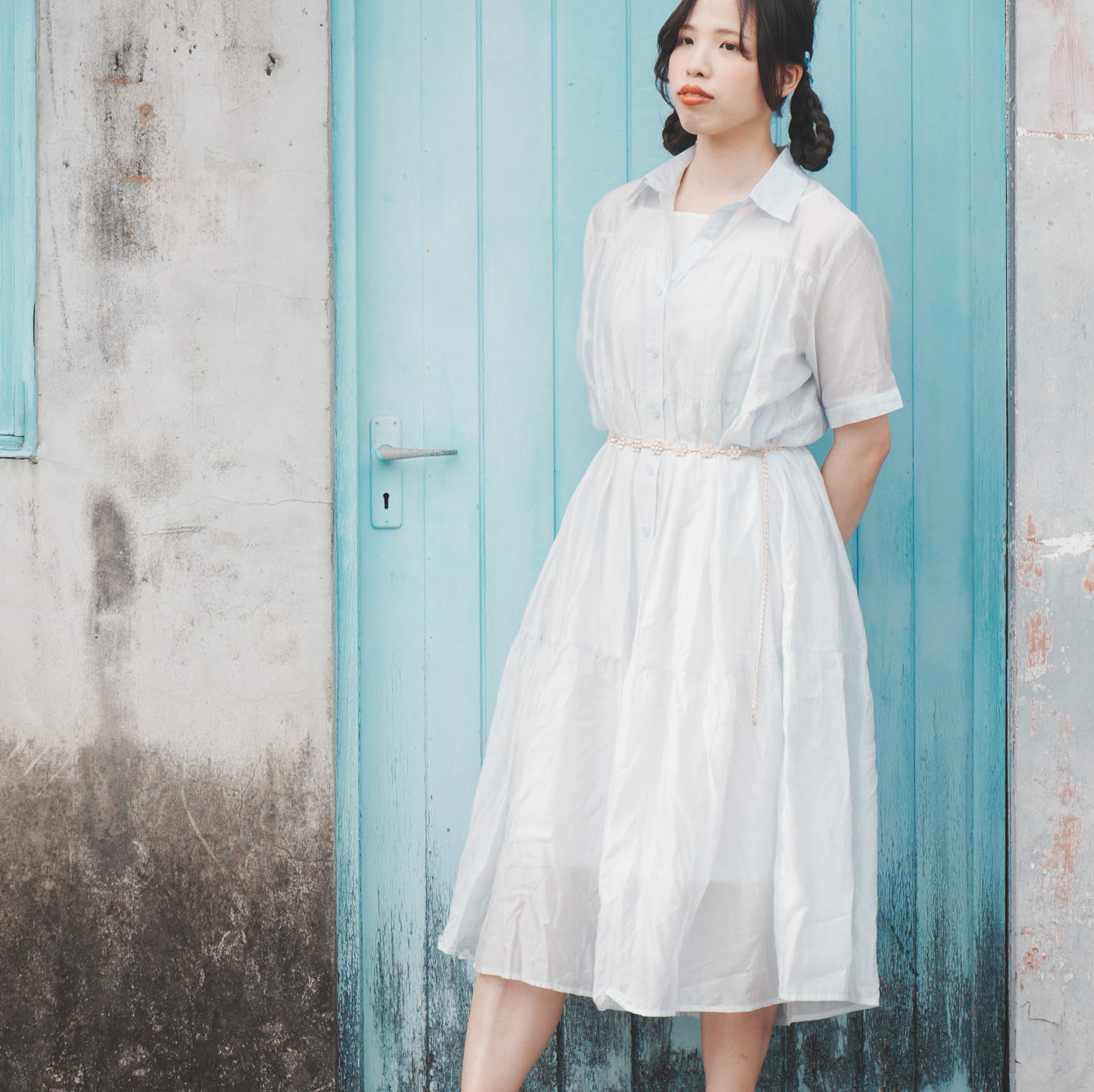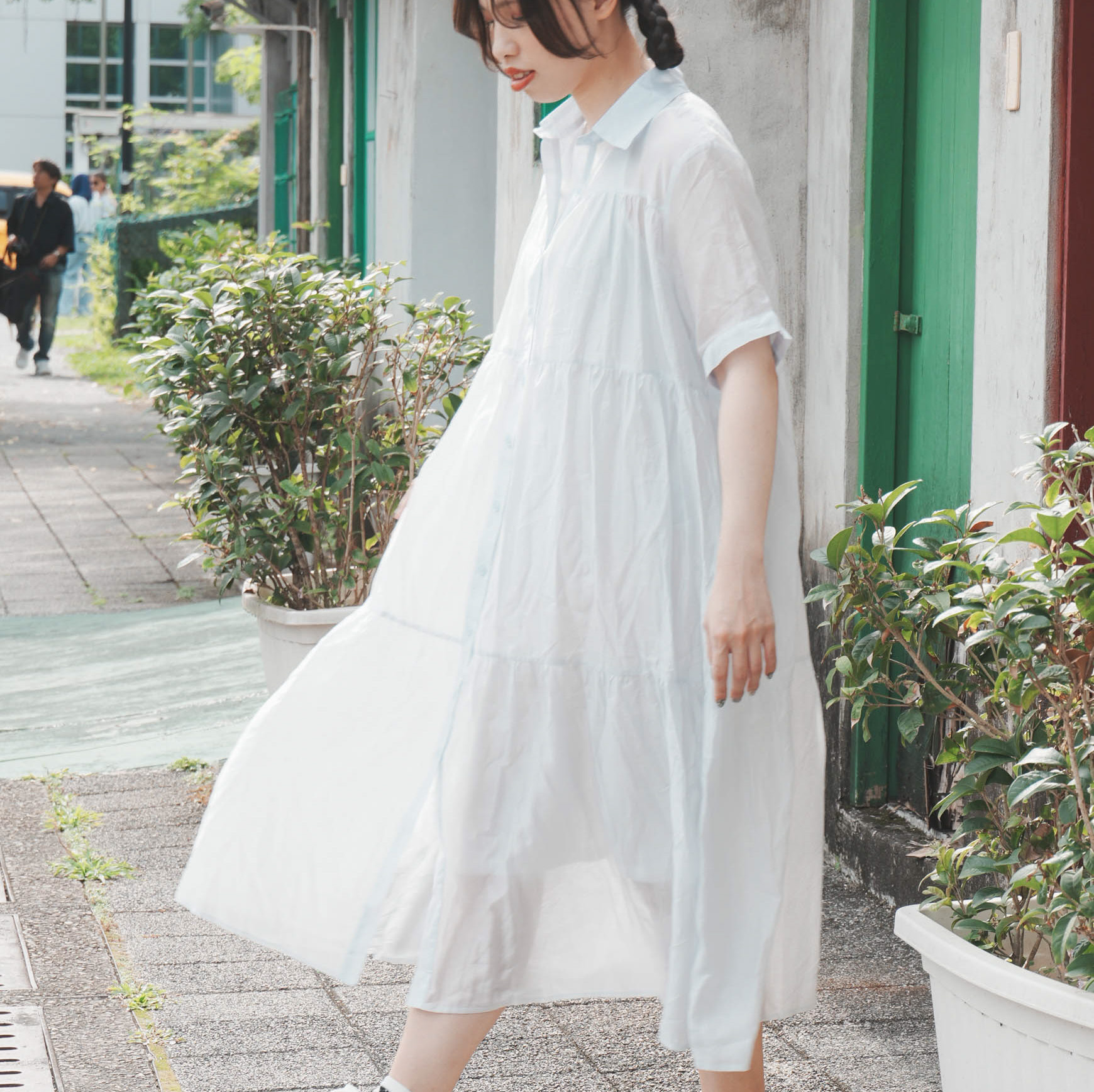 玻璃紙般的透膚襯衫! 真兩件式,裡面都有附一件白色的吊帶長洋裝~ 因此要拆開來和別的單品搭配也可以´-ω-)b 版型寬鬆,喜歡顯腰身的朋朋可以搭配腰鍊或腰帶 喜歡日系文青、森林風的朋朋可以盡情寬鬆,享受飄逸的感覺
