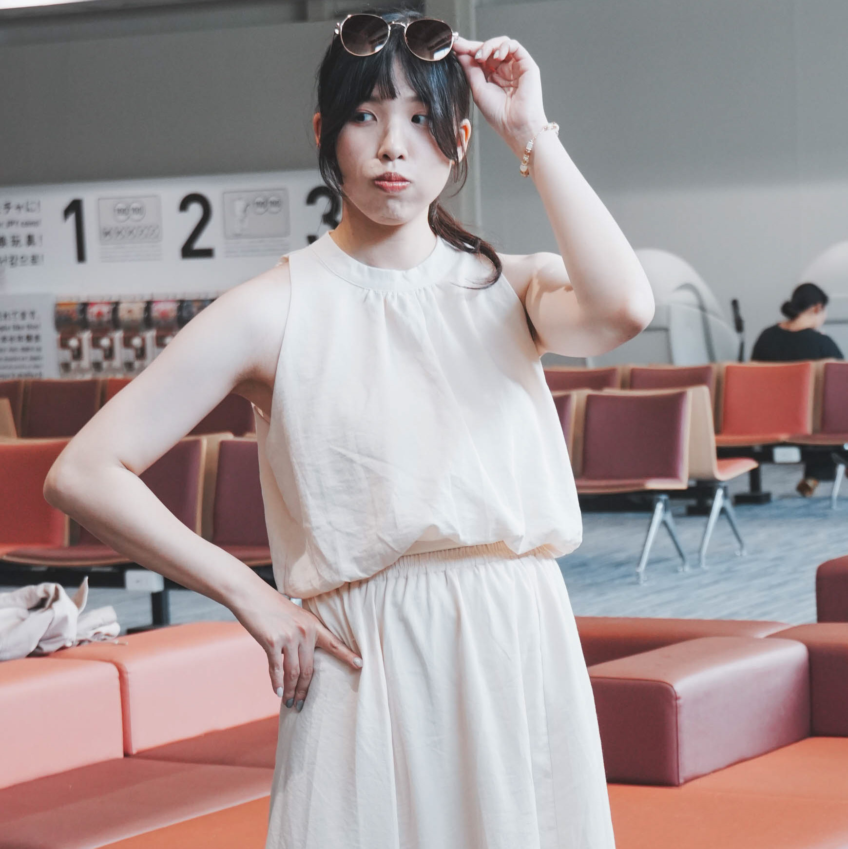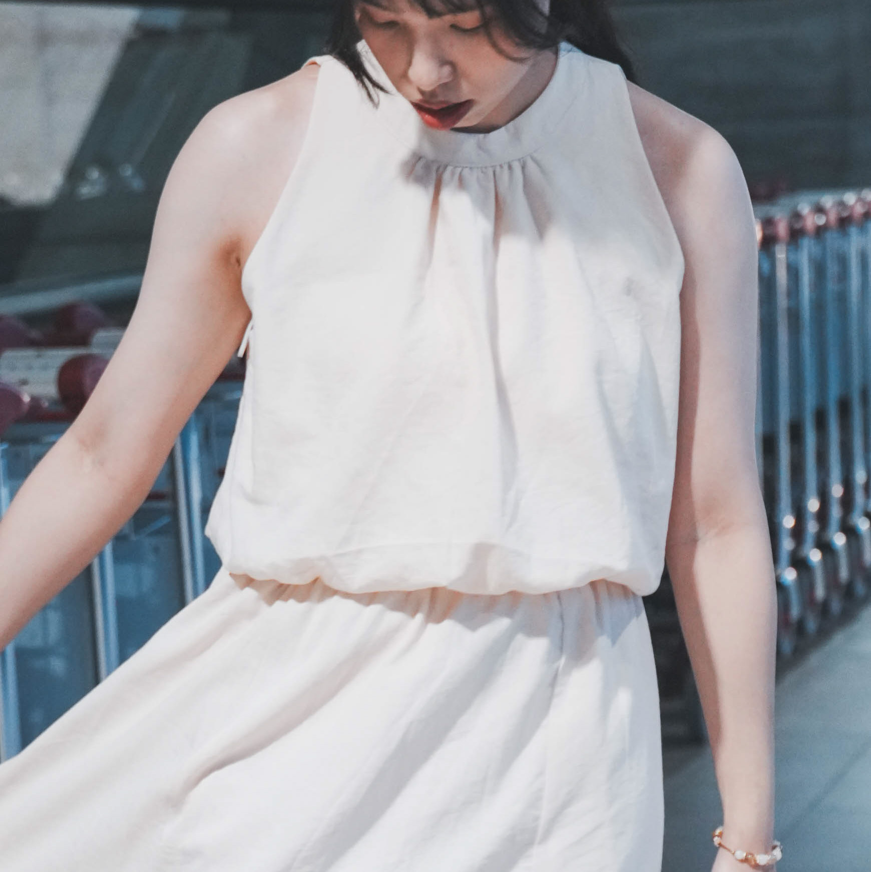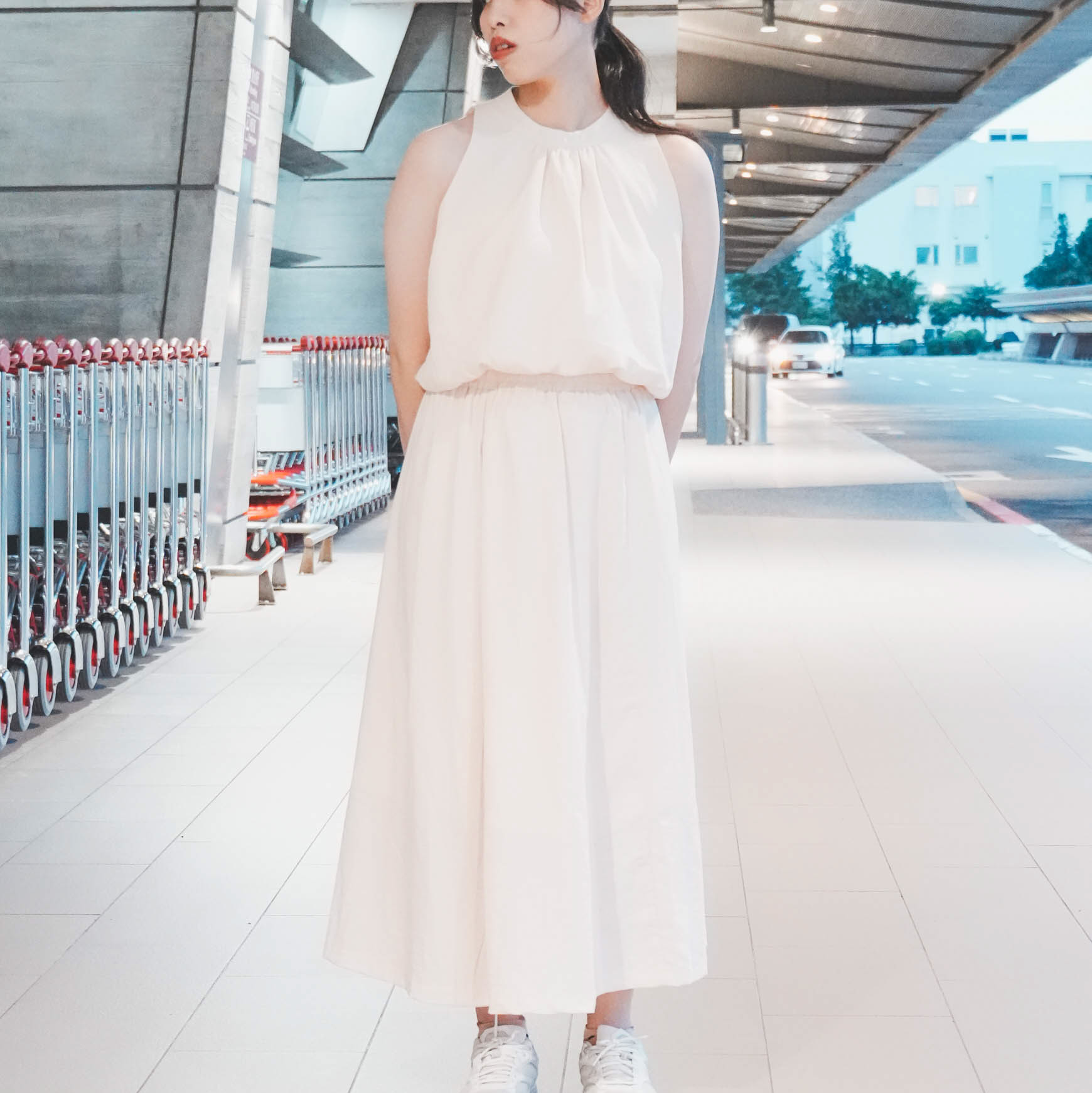 削肩澎澎背心+素面長裙-兩件式(3色)